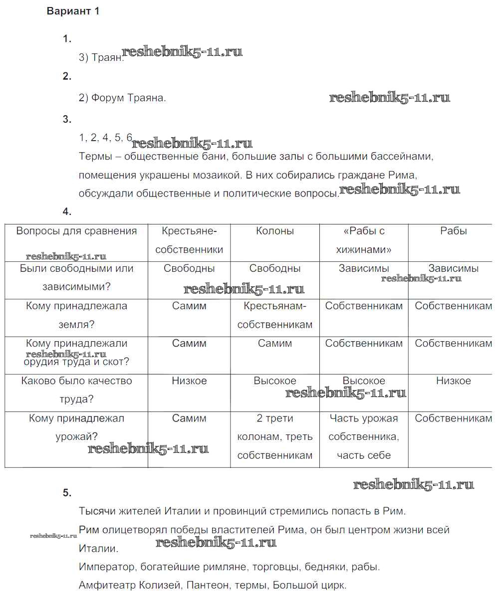 Готовая домашняя работа с ответами по Истории за 5 класс Крючкова Проверочные и контрольные работы Просвещение 2015 ФГОС - Проверочная работа-2 Вариант №1