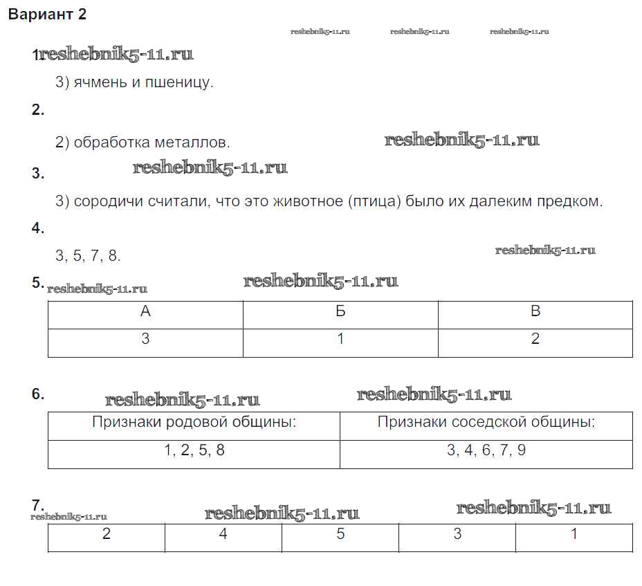 Готовая домашняя работа с ответами по Истории за 5 класс Крючкова Проверочные и контрольные работы Просвещение 2015 ФГОС - Проверочная работа Вариант №2