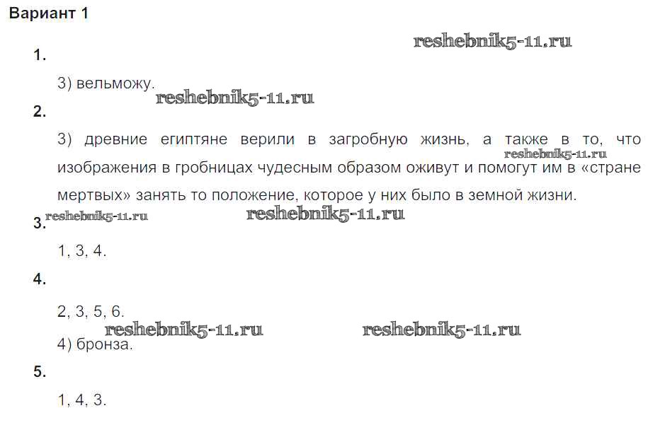 Готовая домашняя работа с ответами по Истории за 5 класс Крючкова Проверочные и контрольные работы Просвещение 2015 ФГОС - Проверочная работа-2 Вариант №1