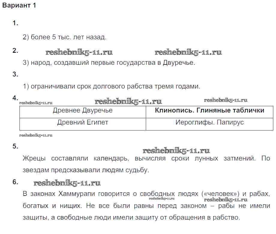 Готовая домашняя работа с ответами по Истории за 5 класс Крючкова Проверочные и контрольные работы Просвещение 2015 ФГОС - Проверочная работа-1 Вариант №1