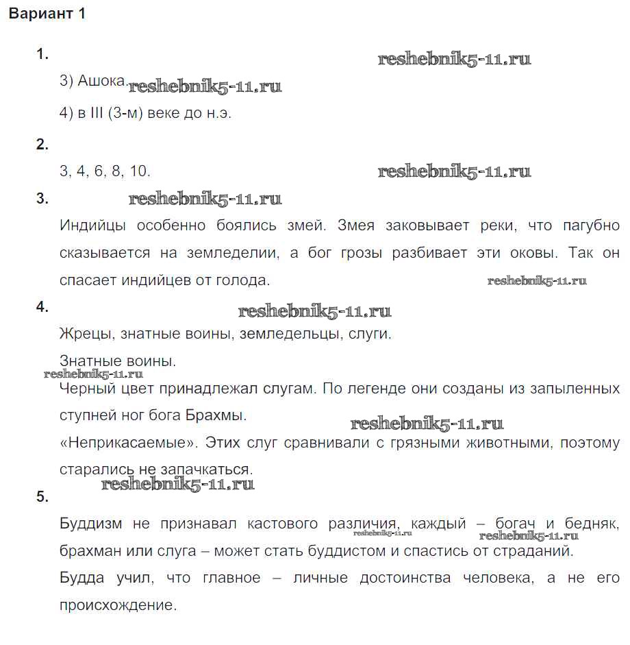 Готовая домашняя работа с ответами по Истории за 5 класс Крючкова Проверочные и контрольные работы Просвещение 2015 ФГОС - Проверочная работа-1 Вариант №1