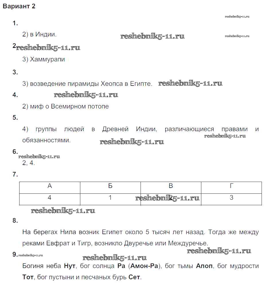 Готовая домашняя работа с ответами по Истории за 5 класс Крючкова Проверочные и контрольные работы Просвещение 2015 ФГОС - Итоговая контрольная работа по теме Древний Восток Вариант №2
