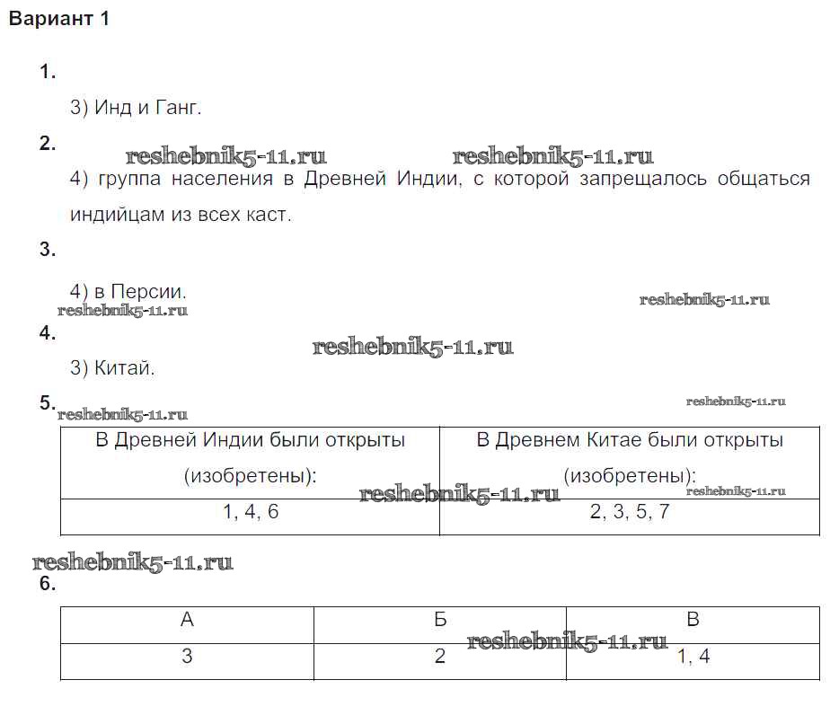 Готовая домашняя работа с ответами по Истории за 5 класс Крючкова Проверочные и контрольные работы Просвещение 2015 ФГОС - Итоговая контрольная работа к главе Индия и Китай в древности Вариант №1