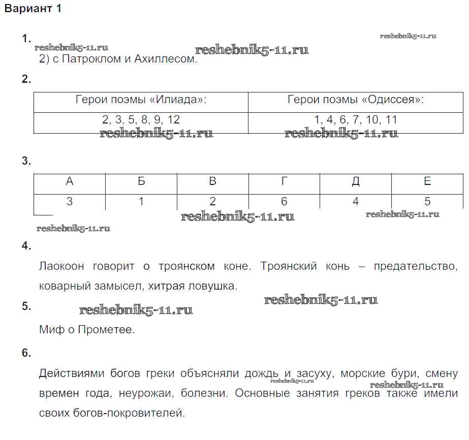 Готовая домашняя работа с ответами по Истории за 5 класс Крючкова Проверочные и контрольные работы Просвещение 2015 ФГОС - Проверочная работа-№2 Вариант №1