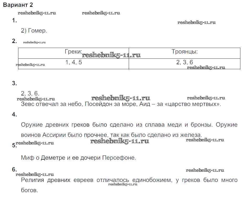 Готовая домашняя работа с ответами по Истории за 5 класс Крючкова Проверочные и контрольные работы Просвещение 2015 ФГОС - Проверочная работа-№2 Вариант №2
