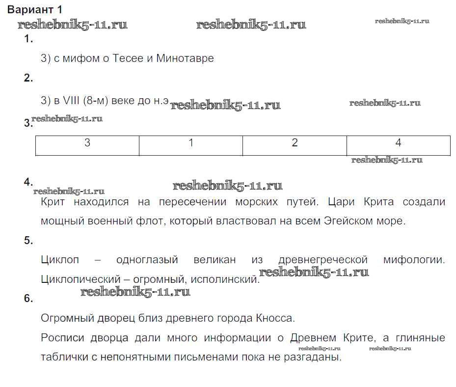 Готовая домашняя работа с ответами по Истории за 5 класс Крючкова Проверочные и контрольные работы Просвещение 2015 ФГОС - Итоговая контрольная работа к главе Древнейшая Греция Вариант №1