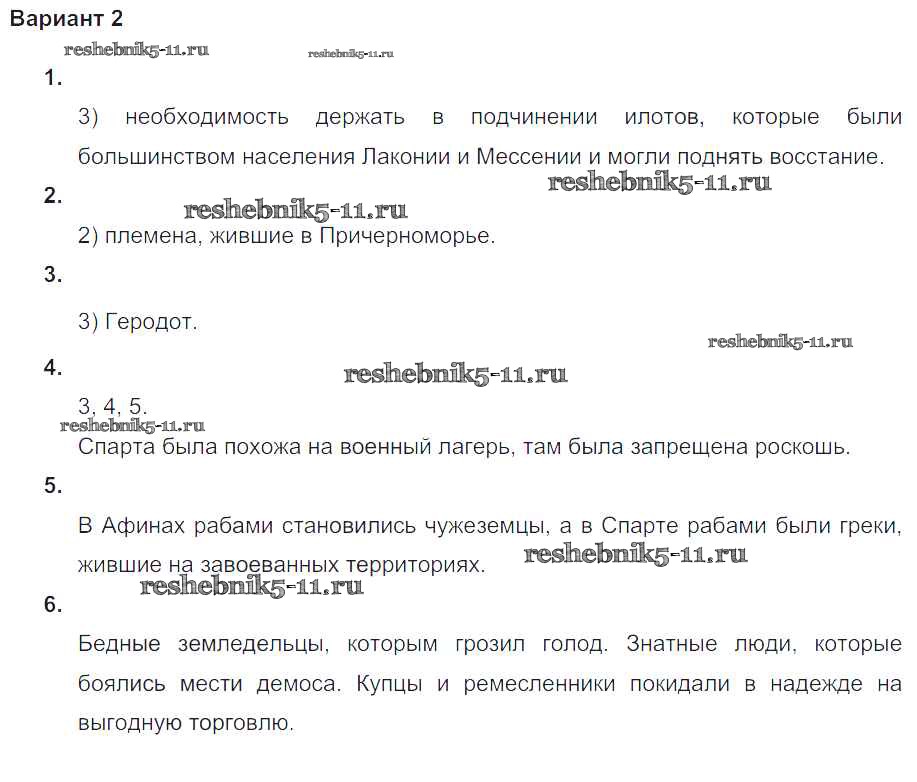 Готовая домашняя работа с ответами по Истории за 5 класс Крючкова Проверочные и контрольные работы Просвещение 2015 ФГОС - Проверочная работа-2 Вариант №2