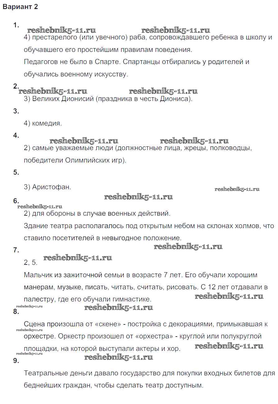 Готовая домашняя работа с ответами по Истории за 5 класс Крючкова Проверочные и контрольные работы Просвещение 2015 ФГОС - Проверочная работа-2 Вариант №2