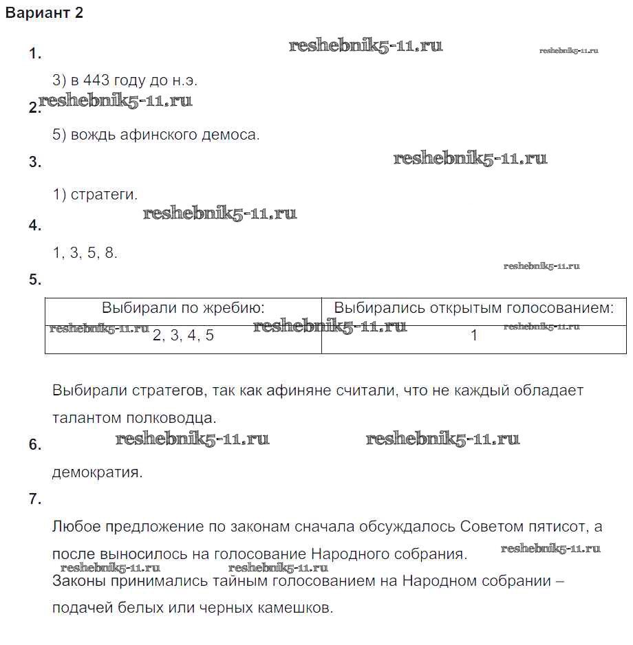 Готовая домашняя работа с ответами по Истории за 5 класс Крючкова Проверочные и контрольные работы Просвещение 2015 ФГОС - Проверочная работа-3 Вариант №2