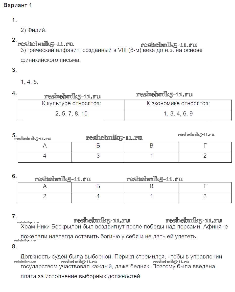 Готовая домашняя работа с ответами по Истории за 5 класс Крючкова Проверочные и контрольные работы Просвещение 2015 ФГОС - Итоговая контрольная работа к главе Возвышение Афин в V веке до н. э. Вариант №1