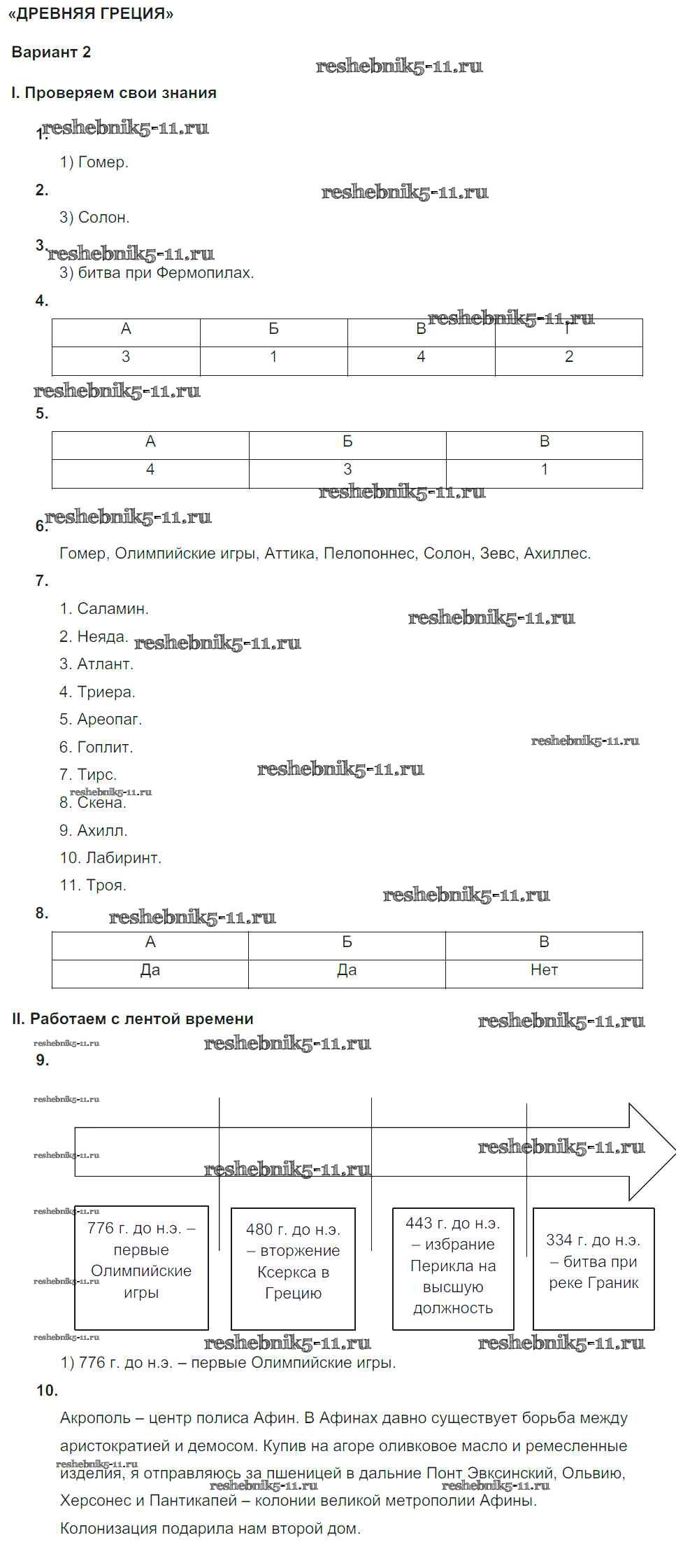 Готовая домашняя работа с ответами по Истории за 5 класс Саплина Тематический контроль Национальное образование 2016 ФГОС - КР-3. Древняя Греция вариант №2