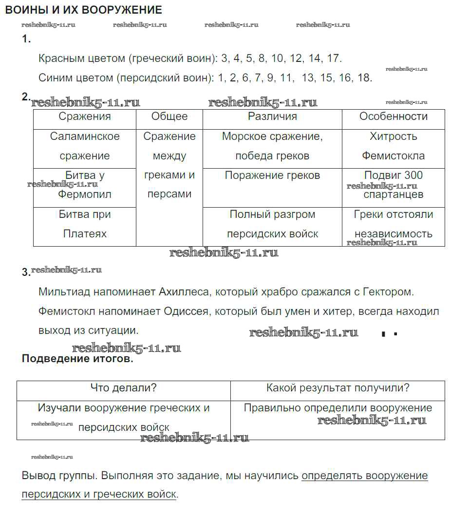 Готовая домашняя работа с ответами по Истории за 5 класс Саплина Тематический контроль Национальное образование 2016 ФГОС - Мини проекты №10. Войны и их вооружение