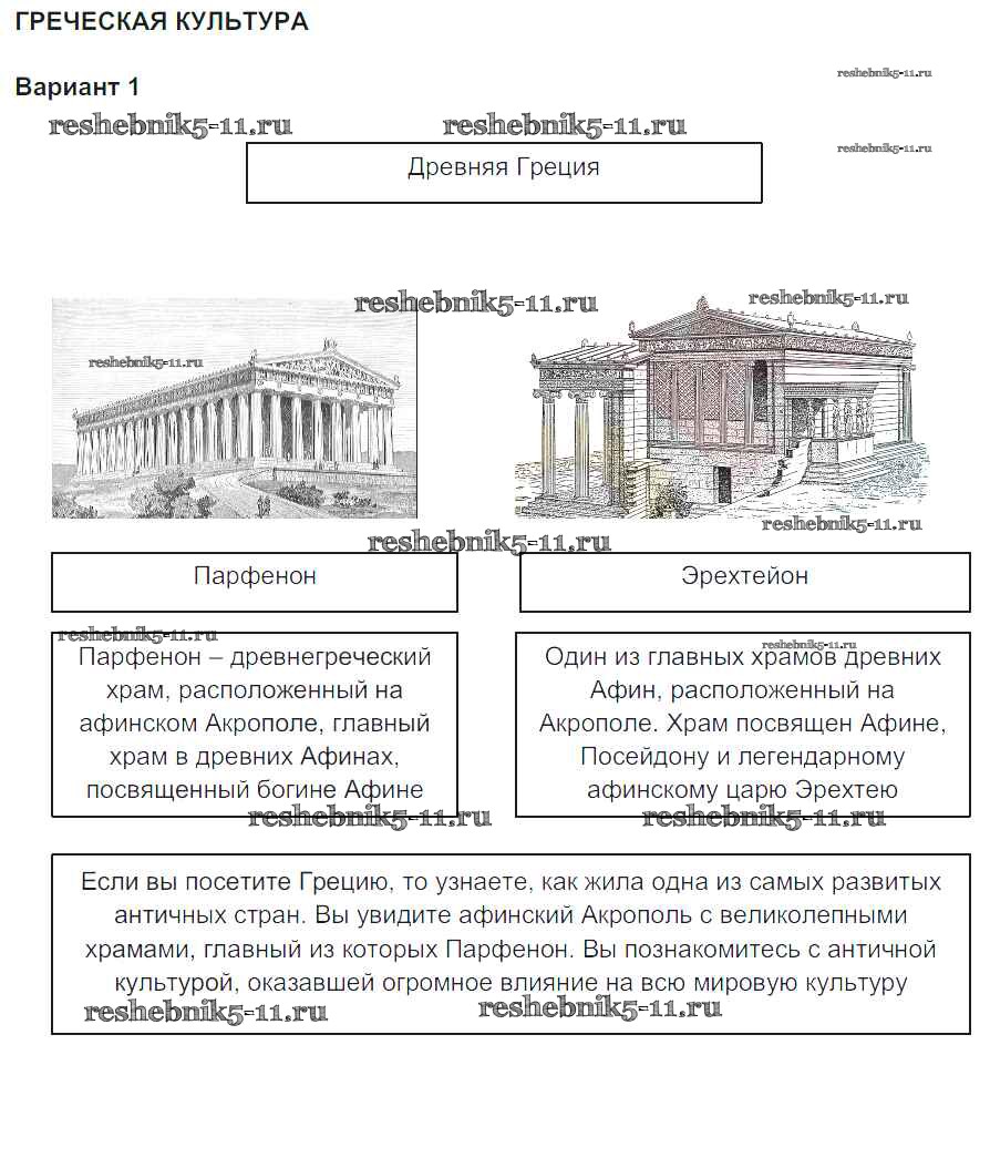 Готовая домашняя работа с ответами по Истории за 5 класс Саплина Тематический контроль Национальное образование 2016 ФГОС - Проект 1. Греческая культура Вариант №1
