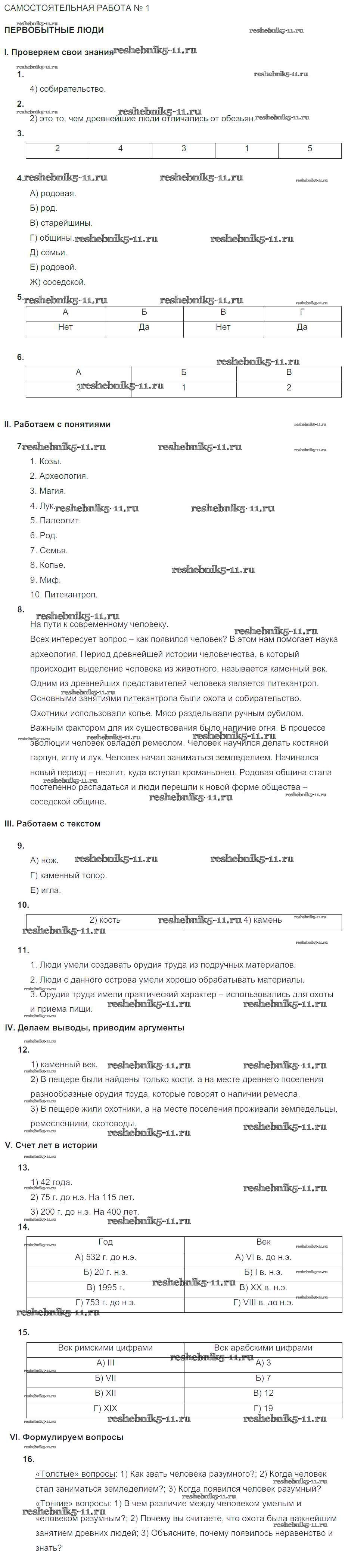 Готовая домашняя работа с ответами по Истории за 5 класс Саплина Тематический контроль Национальное образование 2016 ФГОС - Самостоятельные работы СР №1. Первобытные люди