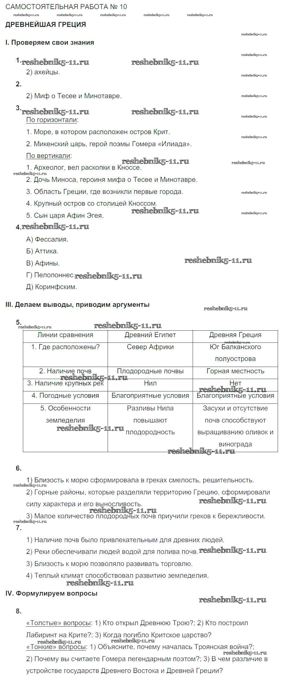 Решебник / самостоятельная работа / ср №10. Древнейшая Греция