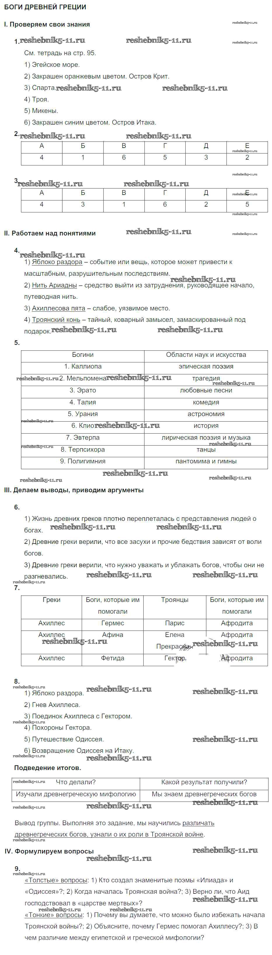 Готовая домашняя работа с ответами по Истории за 5 класс Саплина Тематический контроль Национальное образование 2016 ФГОС - Самостоятельные работы СР №11. Боги Древней Греции