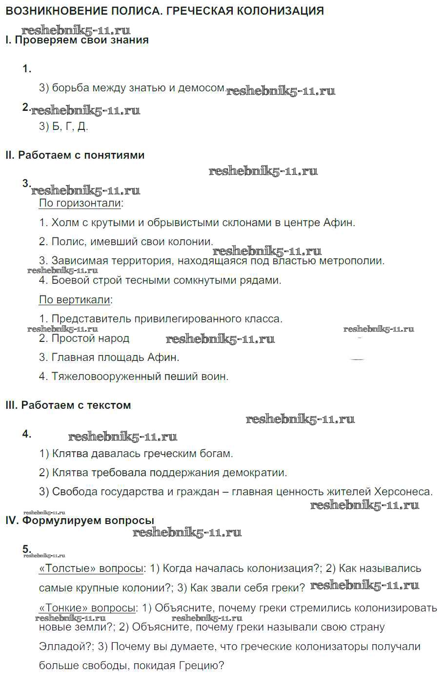 Готовая домашняя работа с ответами по Истории за 5 класс Саплина Тематический контроль Национальное образование 2016 ФГОС - Самостоятельные работы СР №12. Возникновение полиса. Греческая колонизация