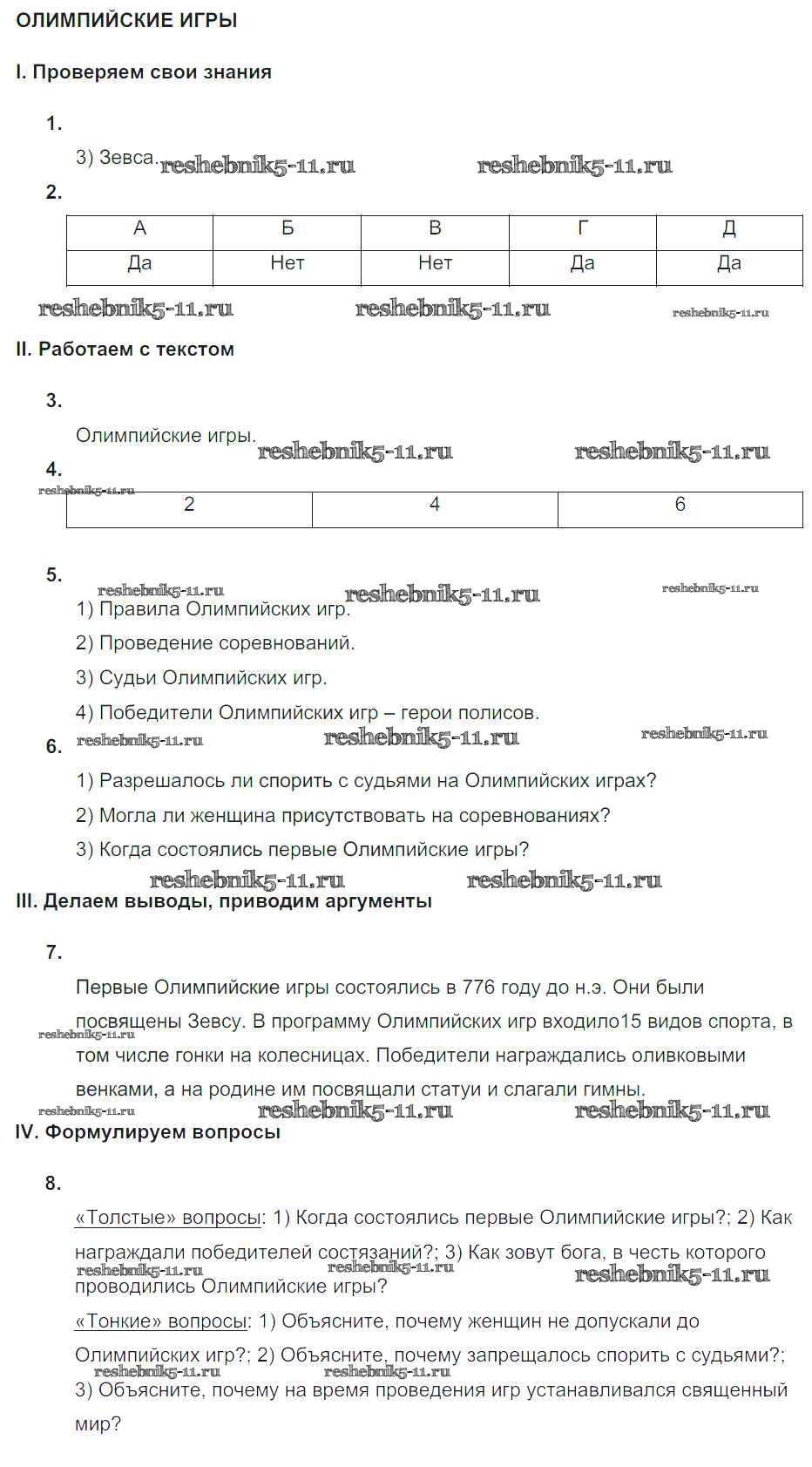 Готовая домашняя работа с ответами по Истории за 5 класс Саплина Тематический контроль Национальное образование 2016 ФГОС - Самостоятельные работы СР №18. Олимпийские игры