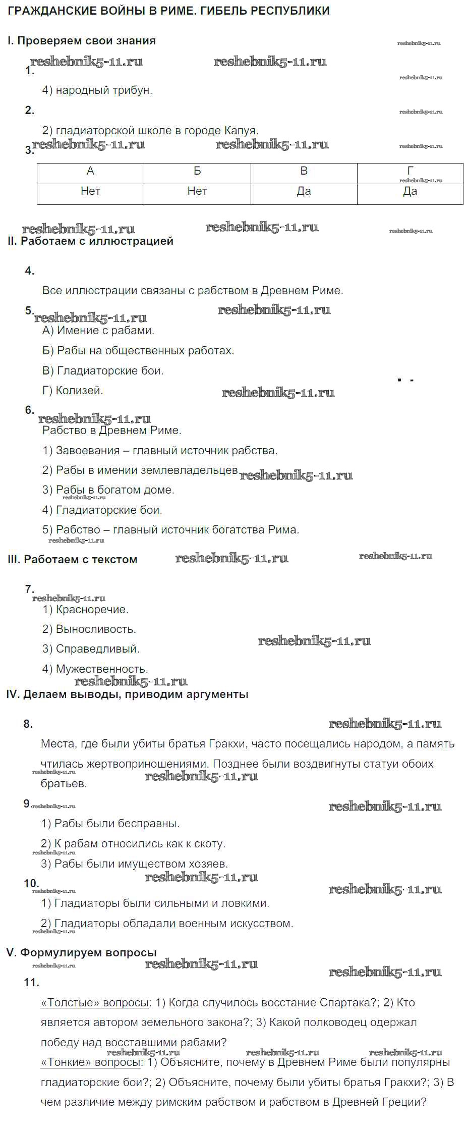 Готовая домашняя работа с ответами по Истории за 5 класс Саплина Тематический контроль Национальное образование 2016 ФГОС - Самостоятельные работы СР №22. Гражданские войны в Риме. Гибель республики