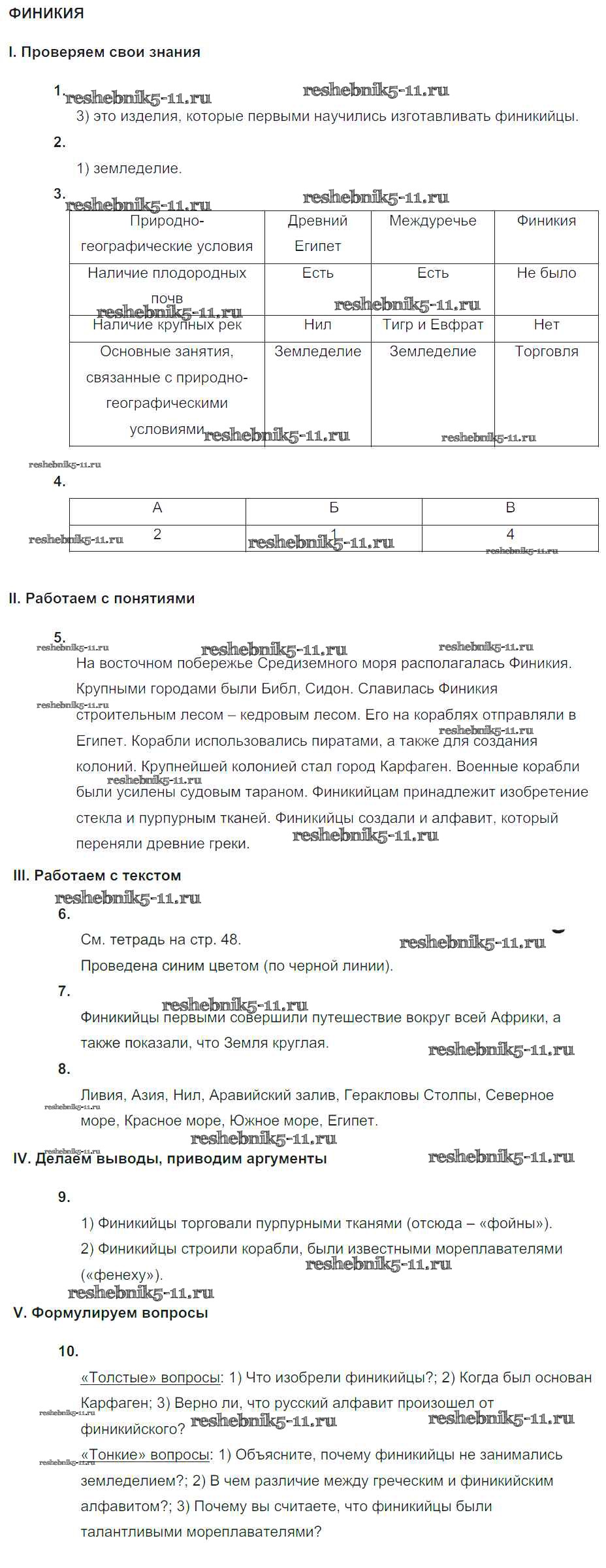 Готовая домашняя работа с ответами по Истории за 5 класс Саплина Тематический контроль Национальное образование 2016 ФГОС - Самостоятельные работы СР №5. Финикия