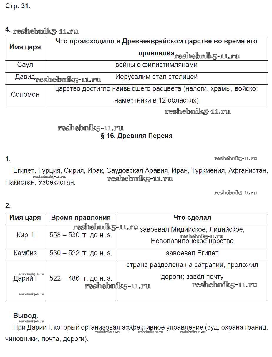 Готовая домашняя работа с ответами по Истории за 5 класс Ванина, Данилова Рабочая тетрадь Вентана-граф 2015 ФГОС - Страницы 31