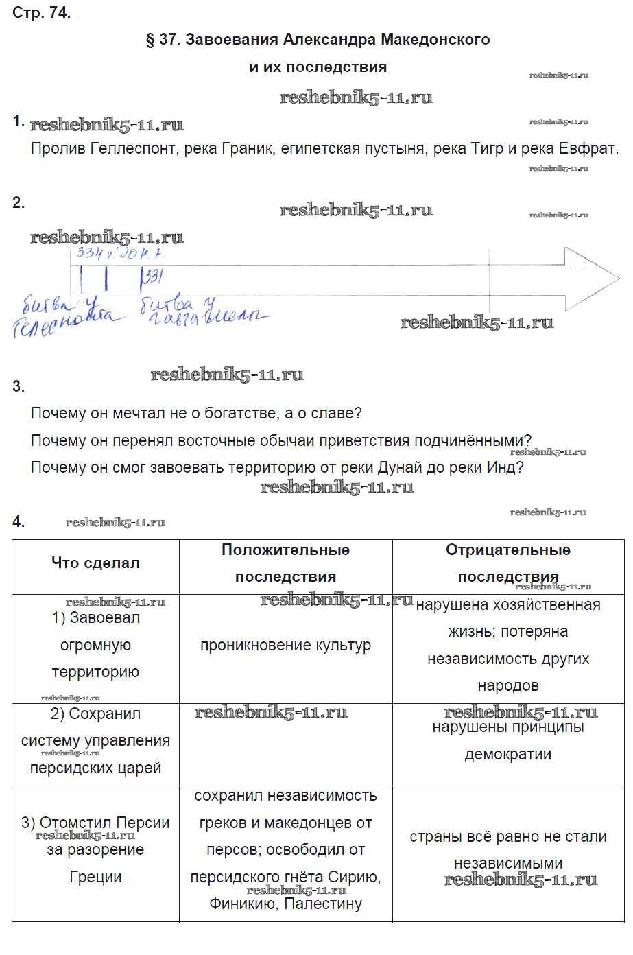 Готовая домашняя работа с ответами по Истории за 5 класс Ванина, Данилова Рабочая тетрадь Вентана-граф 2015 ФГОС - Страницы 74