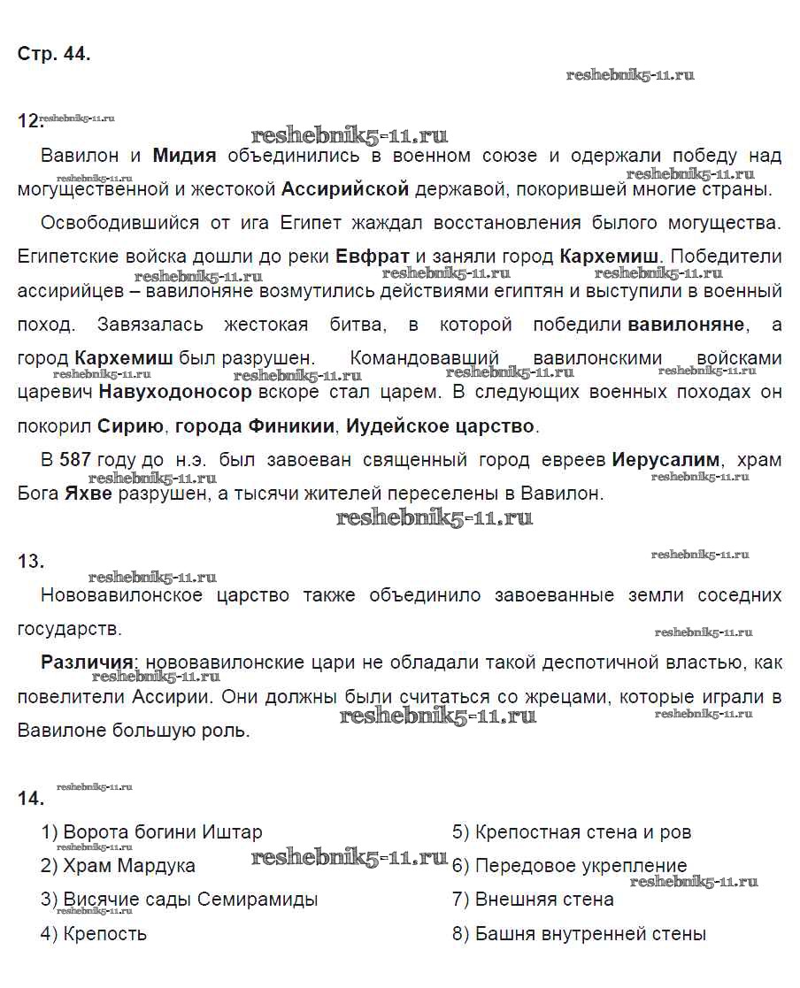 Готовая домашняя работа с ответами по Истории за 5 класс Жукова Рабочая тетрадь Инновационная школа Русское слово 2018 ФГОС - Страницы тетради 44