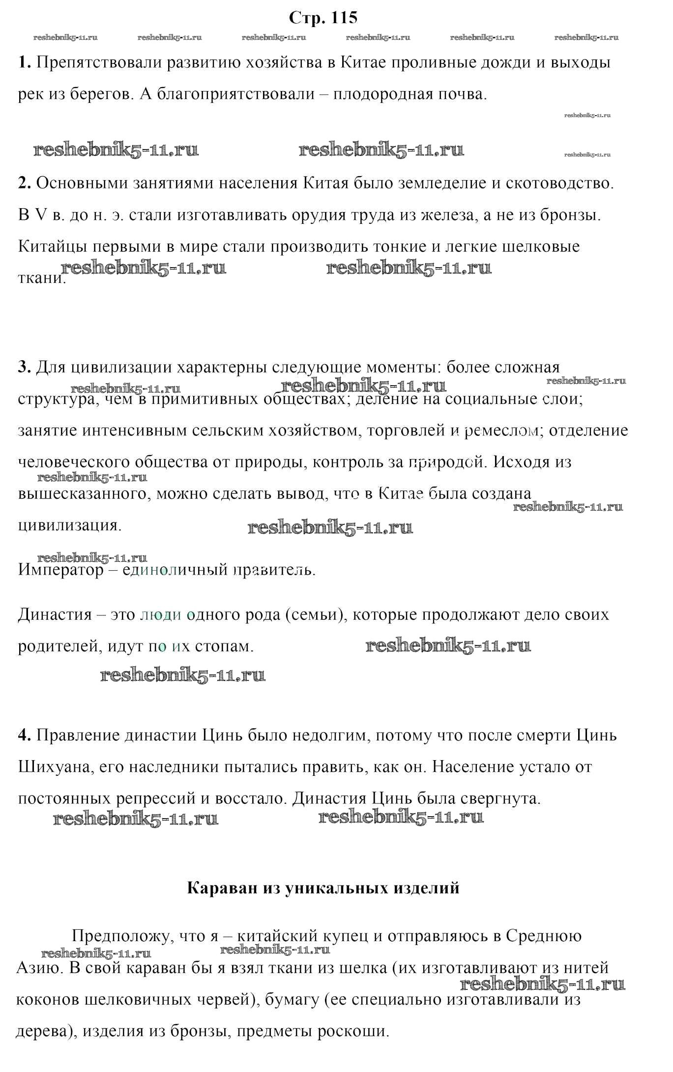Готовая домашняя работа с ответами по Истории за 5 класс Кошелев Учебник Часть 1, 2 Народная асвета 2014 - Часть 1. Страницы 115
