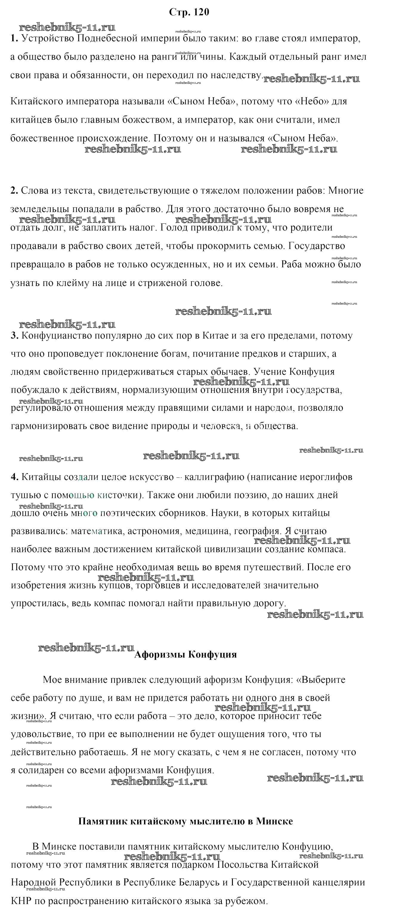 Готовая домашняя работа с ответами по Истории за 5 класс Кошелев Учебник Часть 1, 2 Народная асвета 2014 - Часть 1. Страницы 120