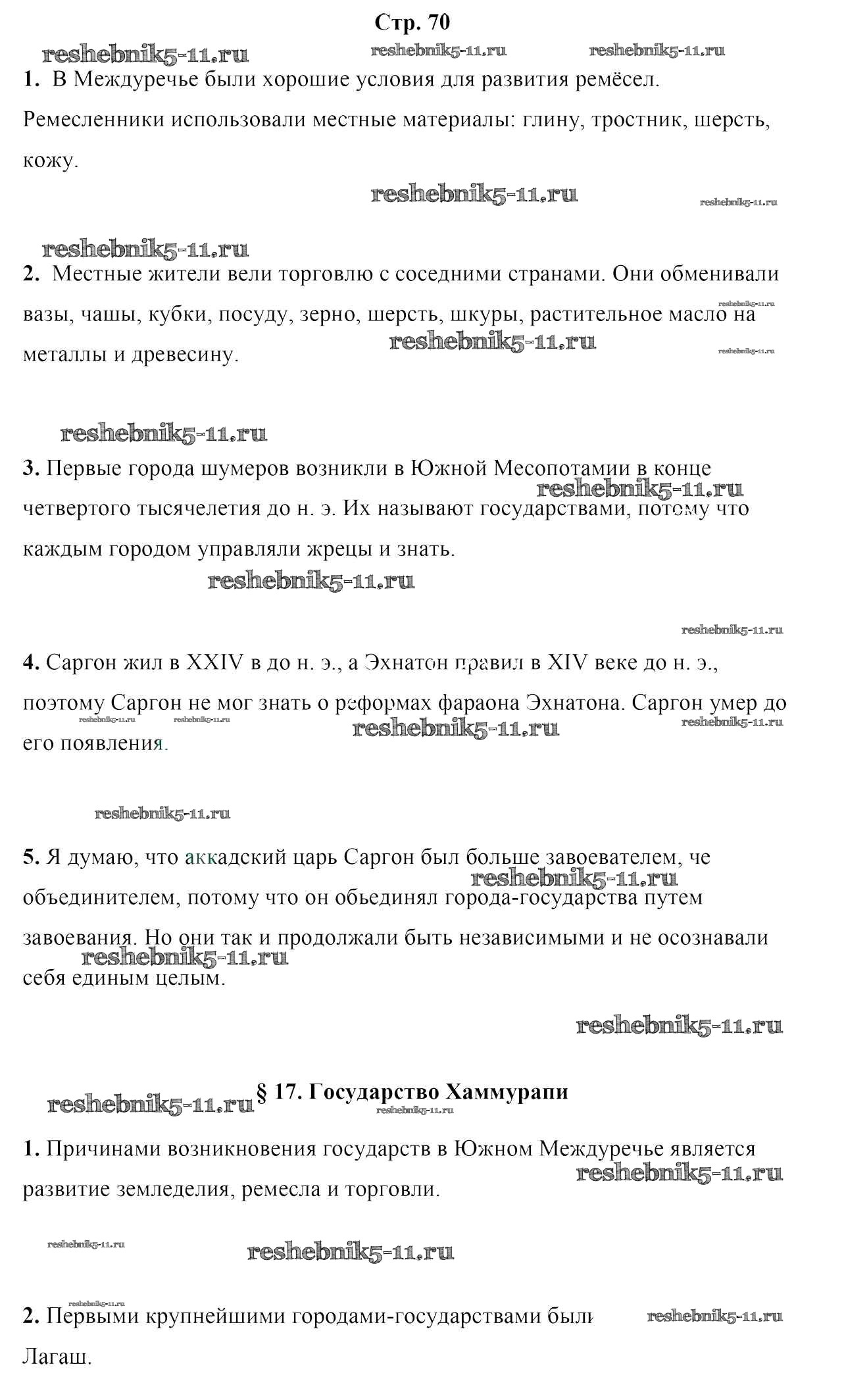 Готовая домашняя работа с ответами по Истории за 5 класс Кошелев Учебник Часть 1, 2 Народная асвета 2014 - Часть 1. Страницы 70