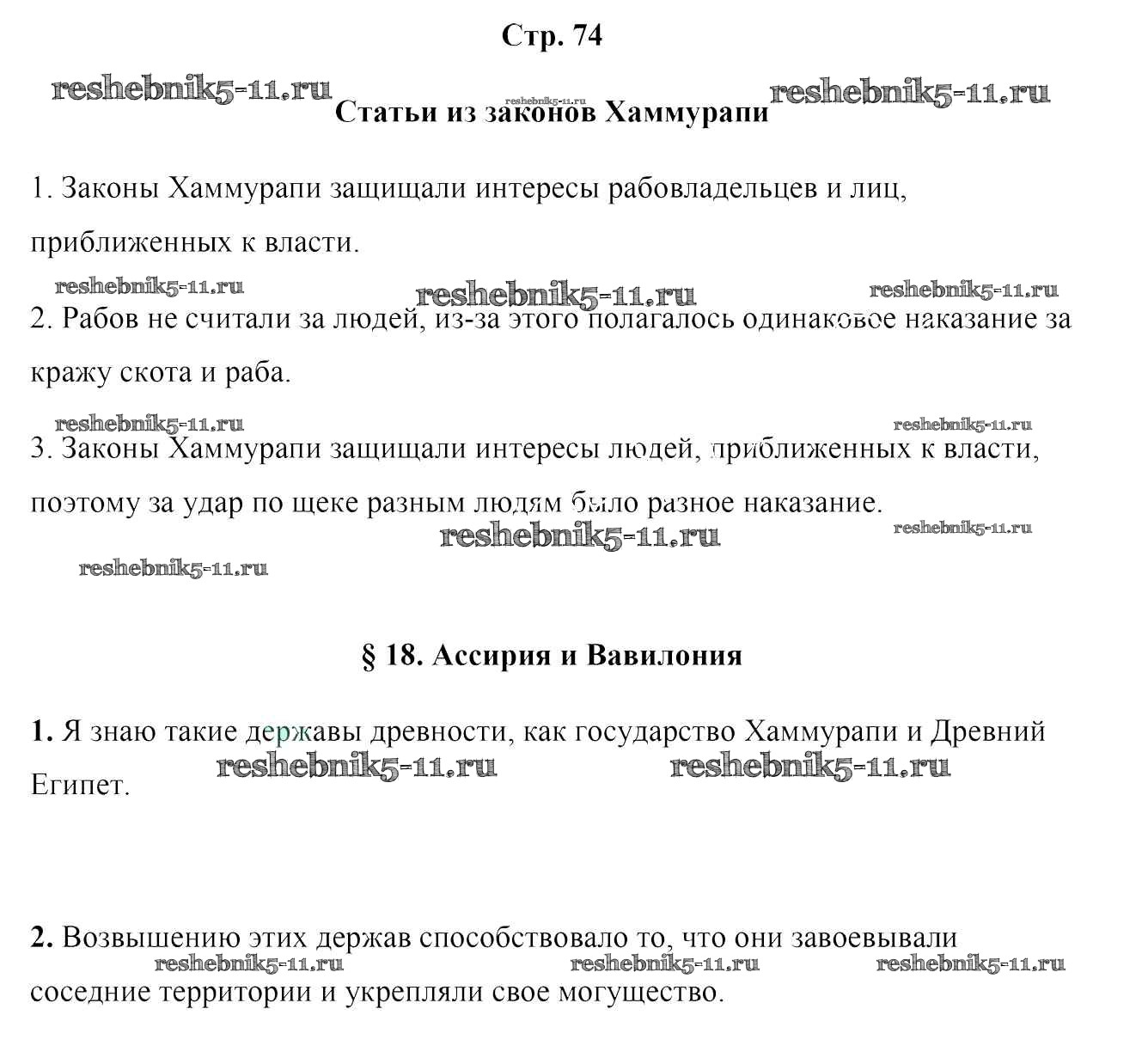 Готовая домашняя работа с ответами по Истории за 5 класс Кошелев Учебник Часть 1, 2 Народная асвета 2014 - Часть 1. Страницы 74