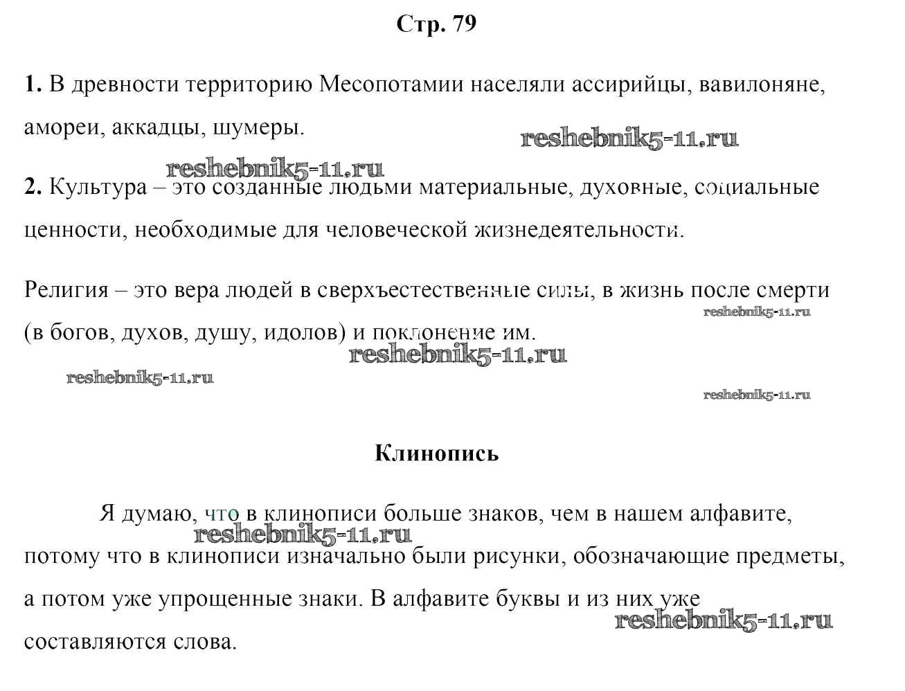 Готовая домашняя работа с ответами по Истории за 5 класс Кошелев Учебник Часть 1, 2 Народная асвета 2014 - Часть 1. Страницы 79
