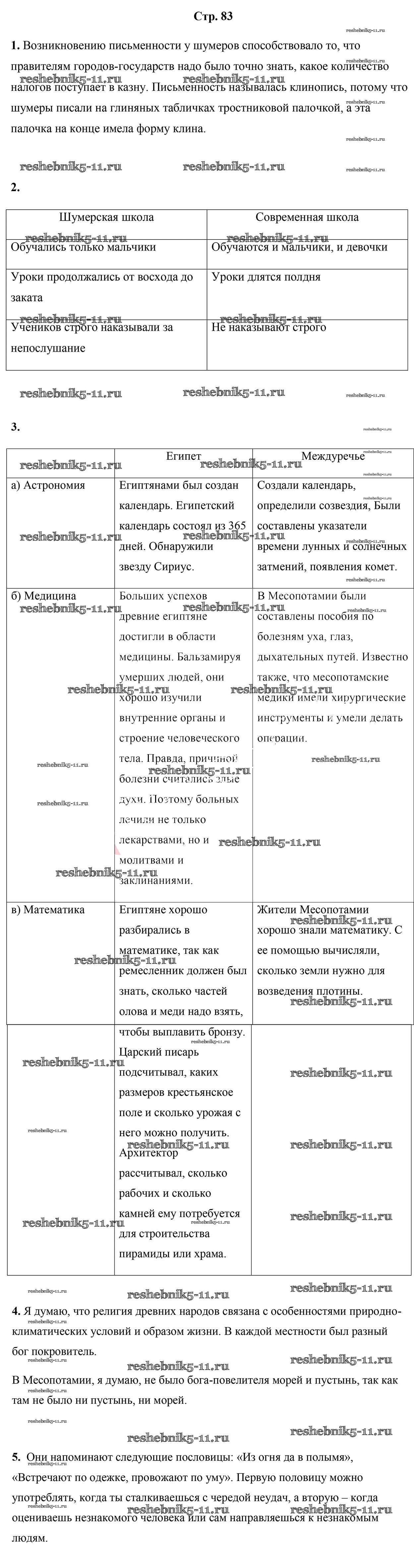 Готовая домашняя работа с ответами по Истории за 5 класс Кошелев Учебник Часть 1, 2 Народная асвета 2014 - Часть 1. Страницы 83