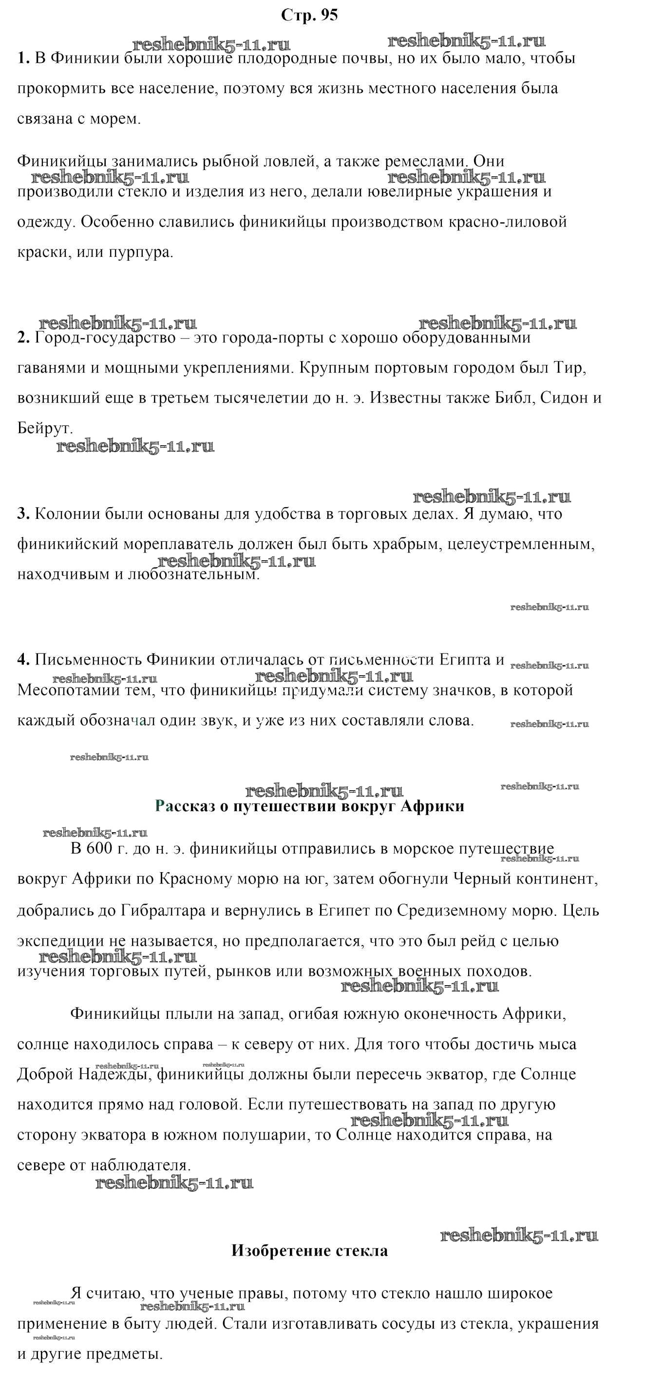 Готовая домашняя работа с ответами по Истории за 5 класс Кошелев Учебник Часть 1, 2 Народная асвета 2014 - Часть 1. Страницы 95