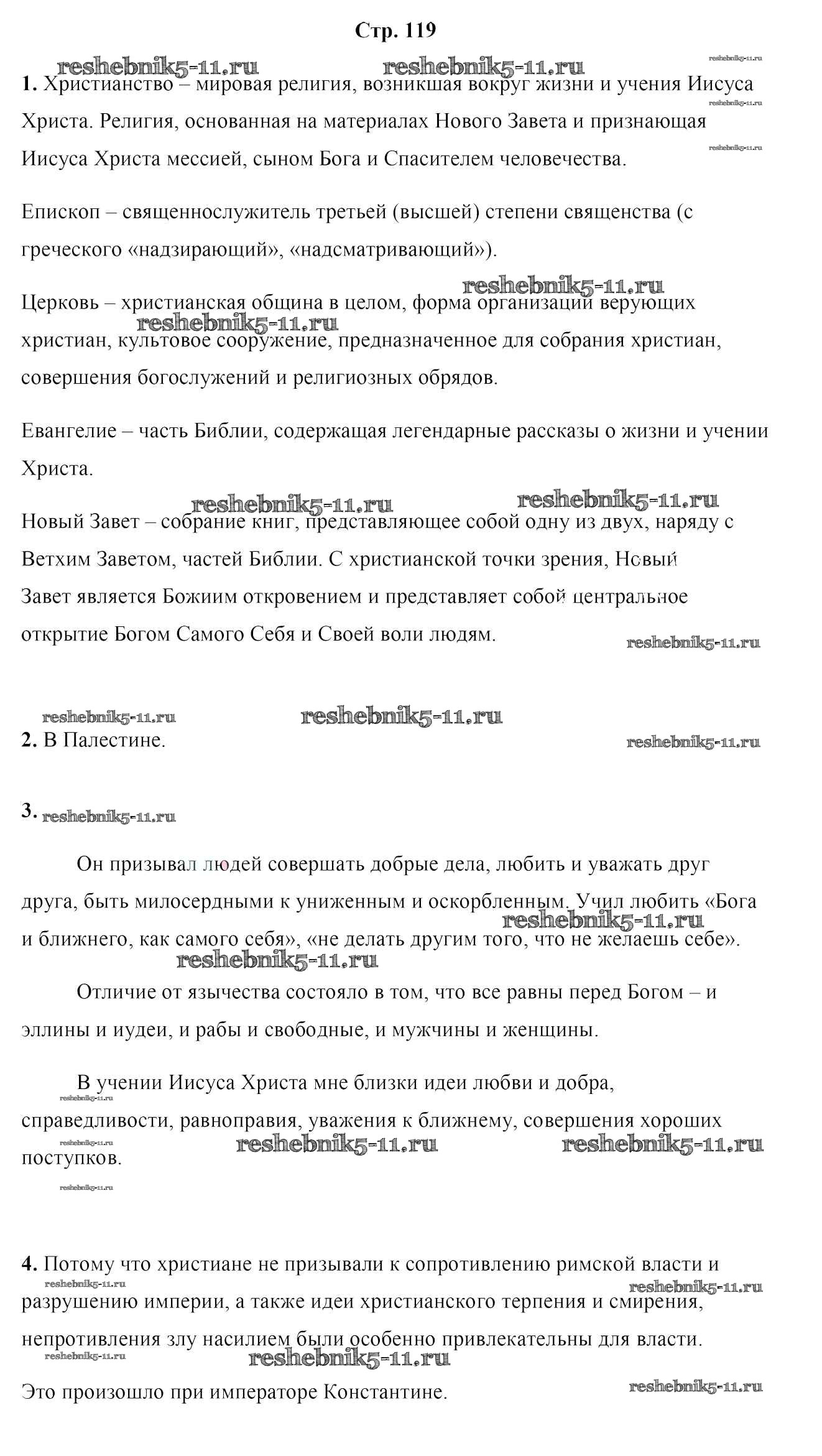Готовая домашняя работа с ответами по Истории за 5 класс Кошелев Учебник Часть 1, 2 Народная асвета 2014 - Часть 2. Страницы 119