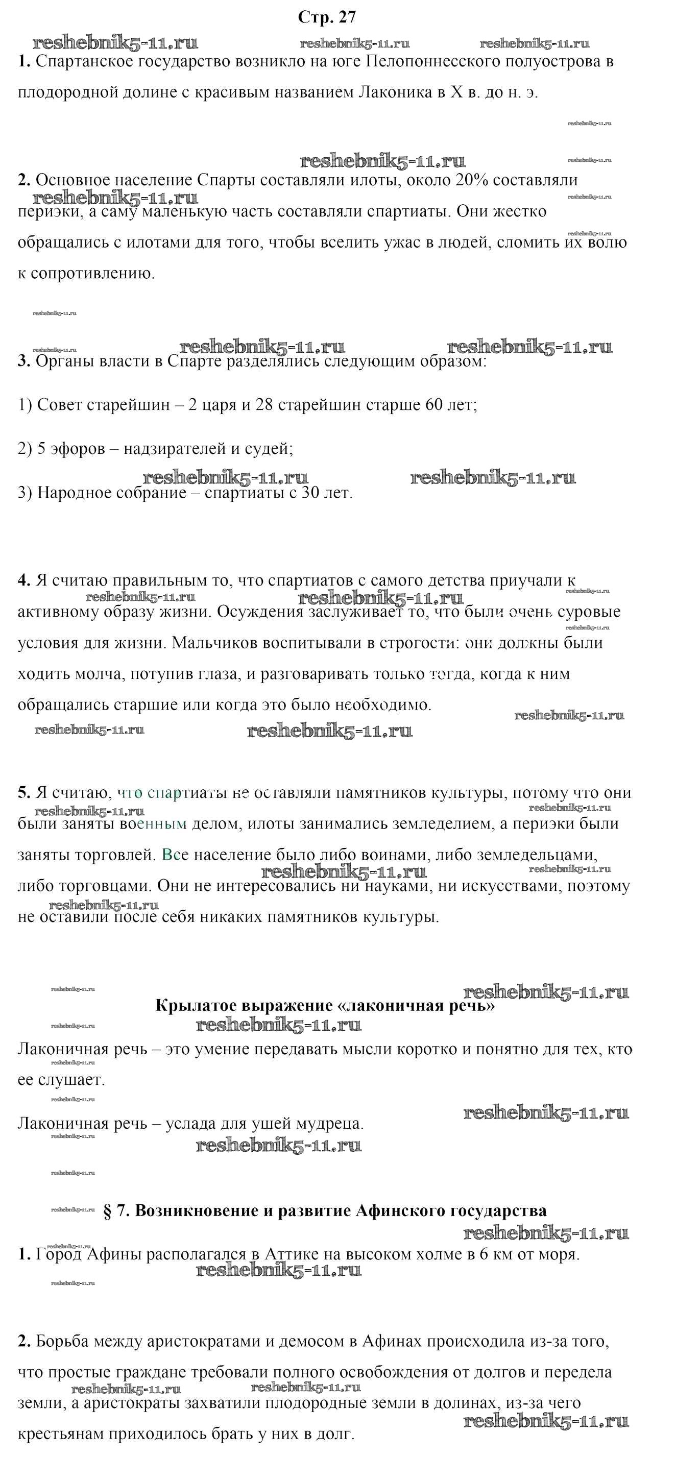 Готовая домашняя работа с ответами по Истории за 5 класс Кошелев Учебник Часть 1, 2 Народная асвета 2014 - Часть 2. Страницы 27
