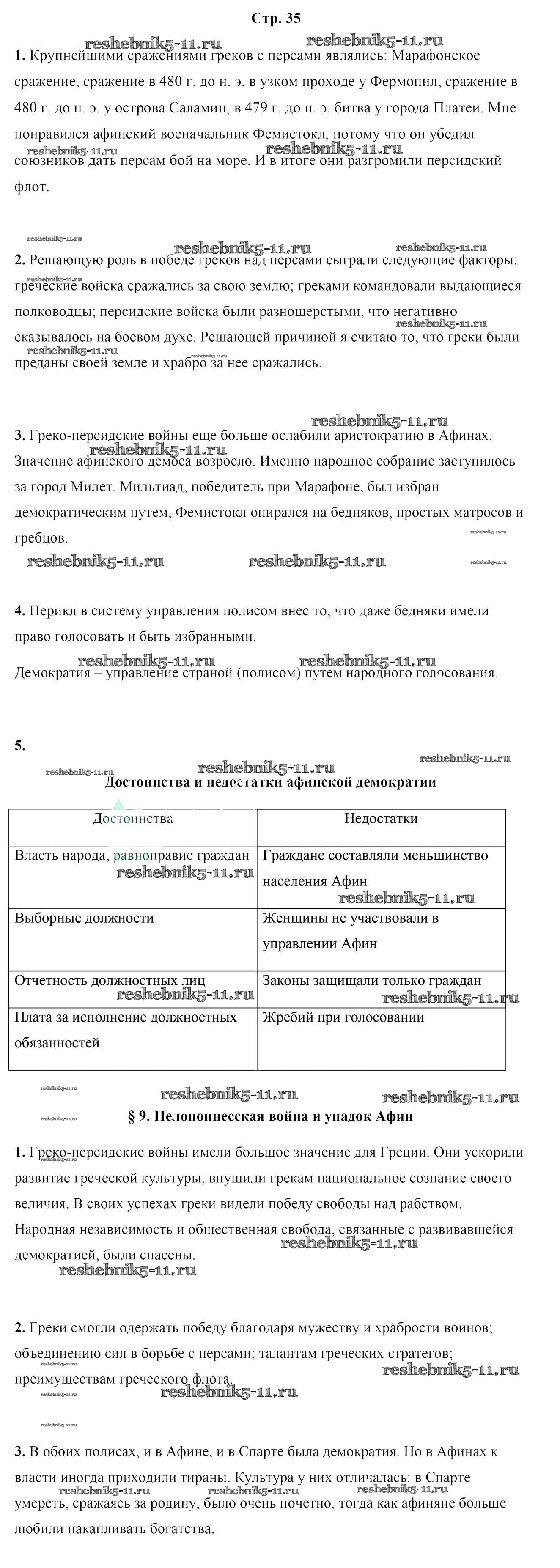 Готовая домашняя работа с ответами по Истории за 5 класс Кошелев Учебник Часть 1, 2 Народная асвета 2014 - Часть 2. Страницы 35