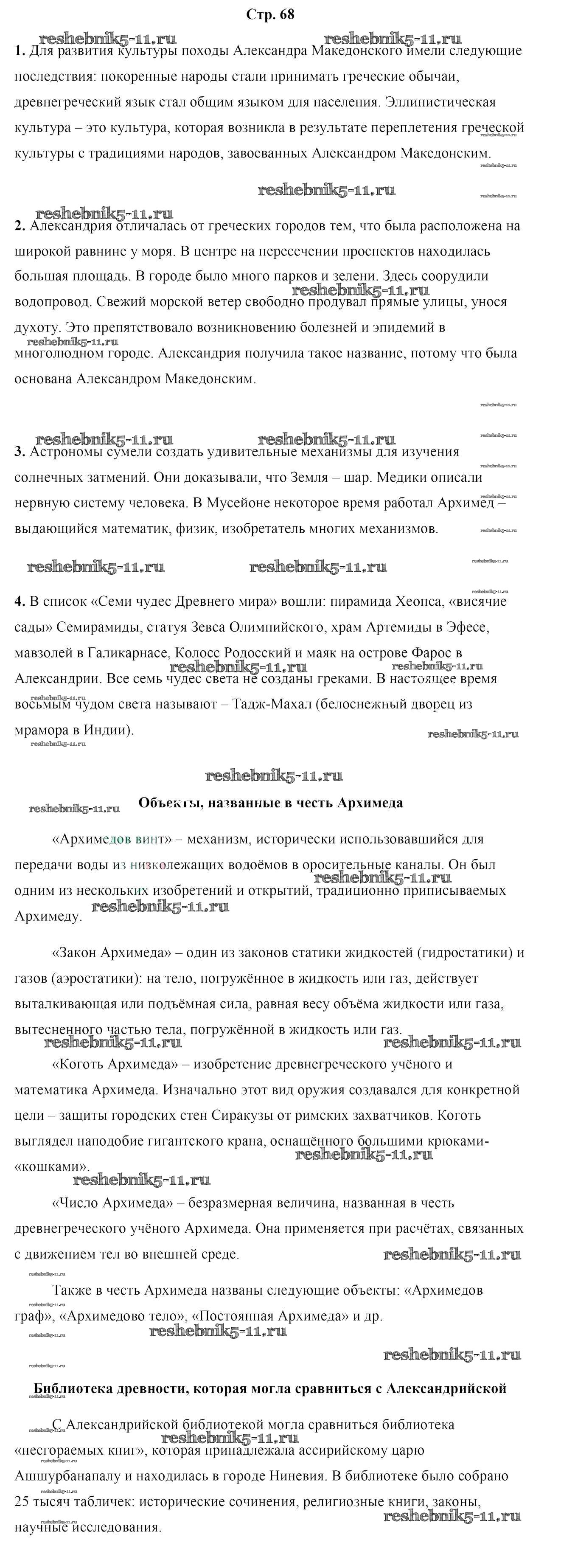 Готовая домашняя работа с ответами по Истории за 5 класс Кошелев Учебник Часть 1, 2 Народная асвета 2014 - Часть 2. Страницы 68