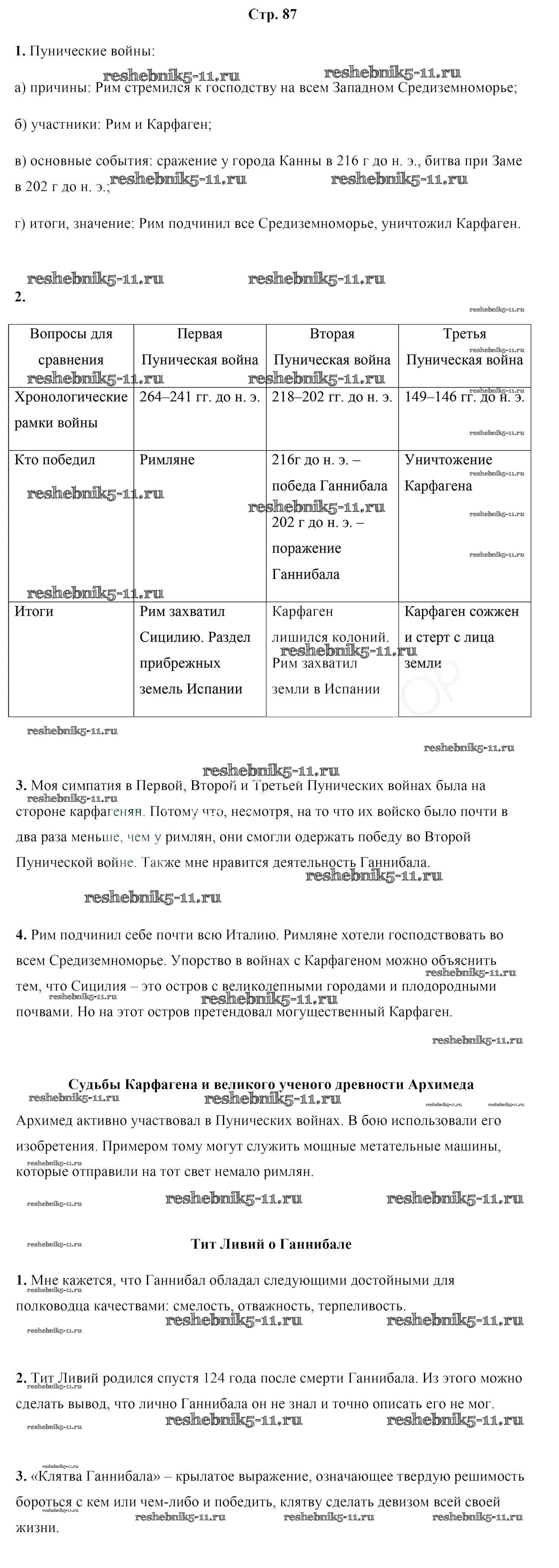 Готовая домашняя работа с ответами по Истории за 5 класс Кошелев Учебник Часть 1, 2 Народная асвета 2014 - Часть 2. Страницы 87