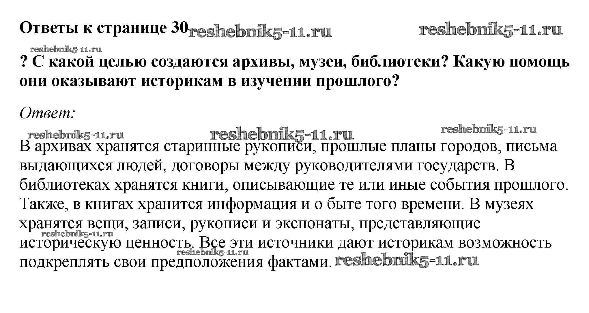 Готовая домашняя работа с ответами по Истории за 5 класс Майков Учебник Алгоритм успеха Вентана-граф 2015 ФГОС - Страницы 30