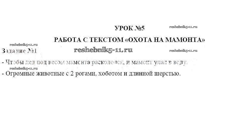 Готовая домашняя работа с ответами по Кубановедению за 5 класс Трехбратов Рабочая тетрадь Традиция 2019 - Урок № 5. Работа с текстом - Охота на мамонта 1