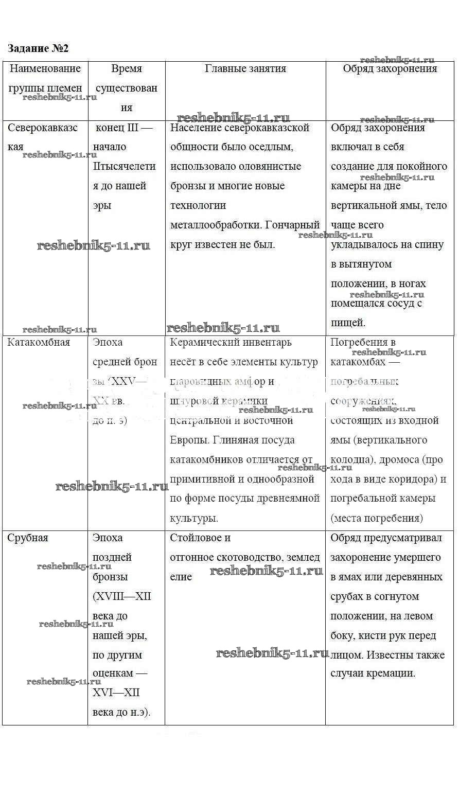 Готовая домашняя работа с ответами по Кубановедению за 5 класс Трехбратов Рабочая тетрадь Традиция 2019 - Урок № 12. Северокавказкая, Катакомбная и Срубная археологические культуры 2
