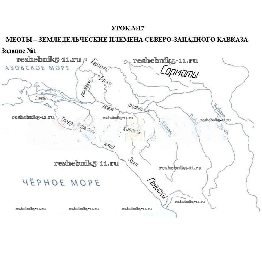 Готовая домашняя работа с ответами по Кубановедению за 5 класс Трехбратов Рабочая тетрадь Традиция 2019 - Урок № 17. Меоты – земледельческие племена Северо-Западного Кавказа 1