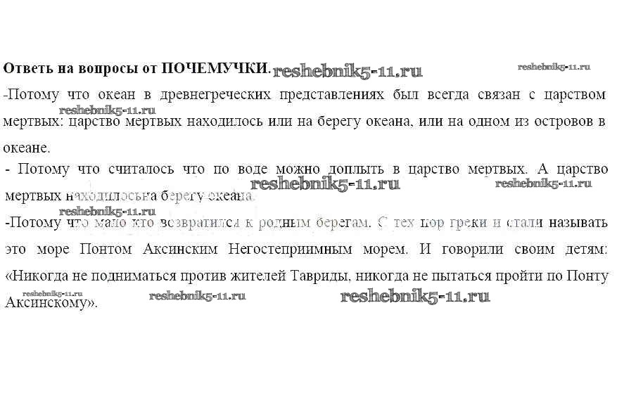 Готовая домашняя работа с ответами по Кубановедению за 5 класс Трехбратов Рабочая тетрадь Традиция 2019 - Урок № 24-25. Античная мифология и Причерноморье Вопросы от Почемучки