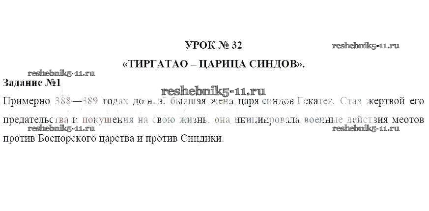 Готовая домашняя работа с ответами по Кубановедению за 5 класс Трехбратов Рабочая тетрадь Традиция 2019 - Урок № 32. Тиргатао – царица Синдов 1