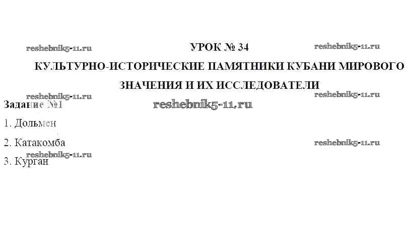 Готовая домашняя работа с ответами по Кубановедению за 5 класс Трехбратов Рабочая тетрадь Традиция 2019 - Урок № 34. Культурно-исторические памятники Кубани мирового значения и их исследователи 1