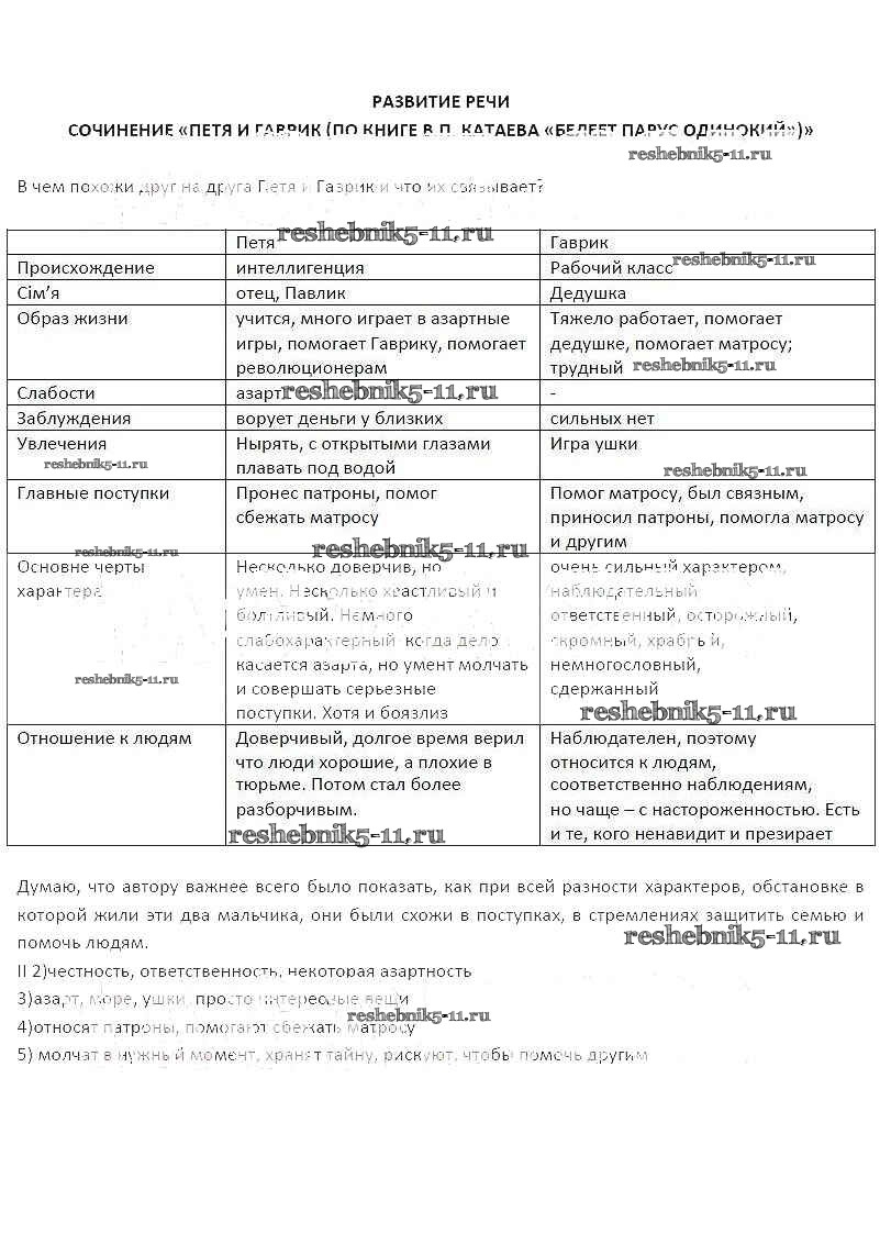 Решебник / тема / Развитие речи. Сочинение Петя и Гаврик (по книге В.П. Катаева Белеет парус одинокий)