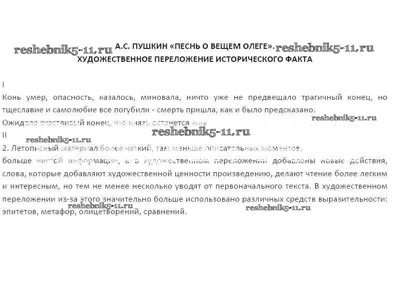Решебник / тема / А.С. Пушкин. Песнь о вещем Олеге. Художественное переложение исторического факта