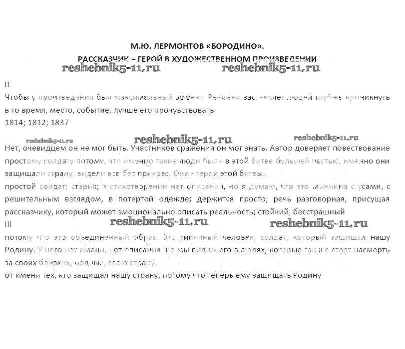 Решебник / тема / М.Ю. Лермонтов. Бородино. Рассказчик - герой в художественном произведении