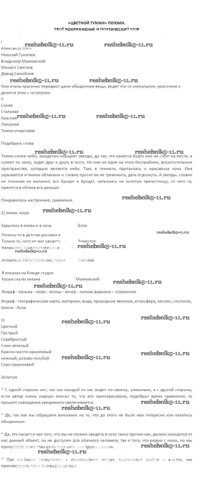 Готовая домашняя работа с ответами по Литературе за 5 класс Бунеев, Чиндилова, Бунеева Рабочая тетрадь Школа 2100 Баласс 2014 ФГОС - Темы Цветной туман поэзии. Твоё воображение и поэтический мир